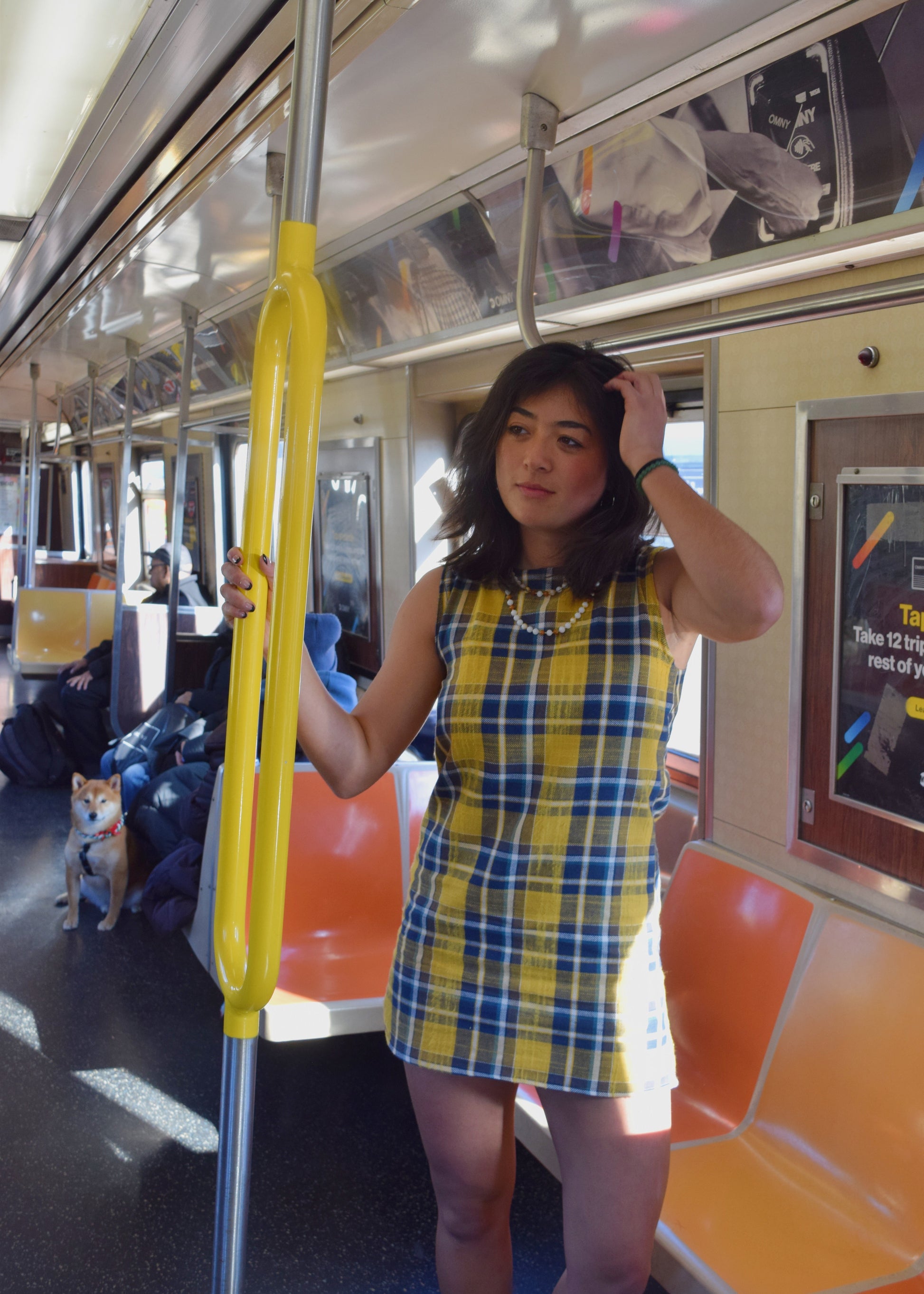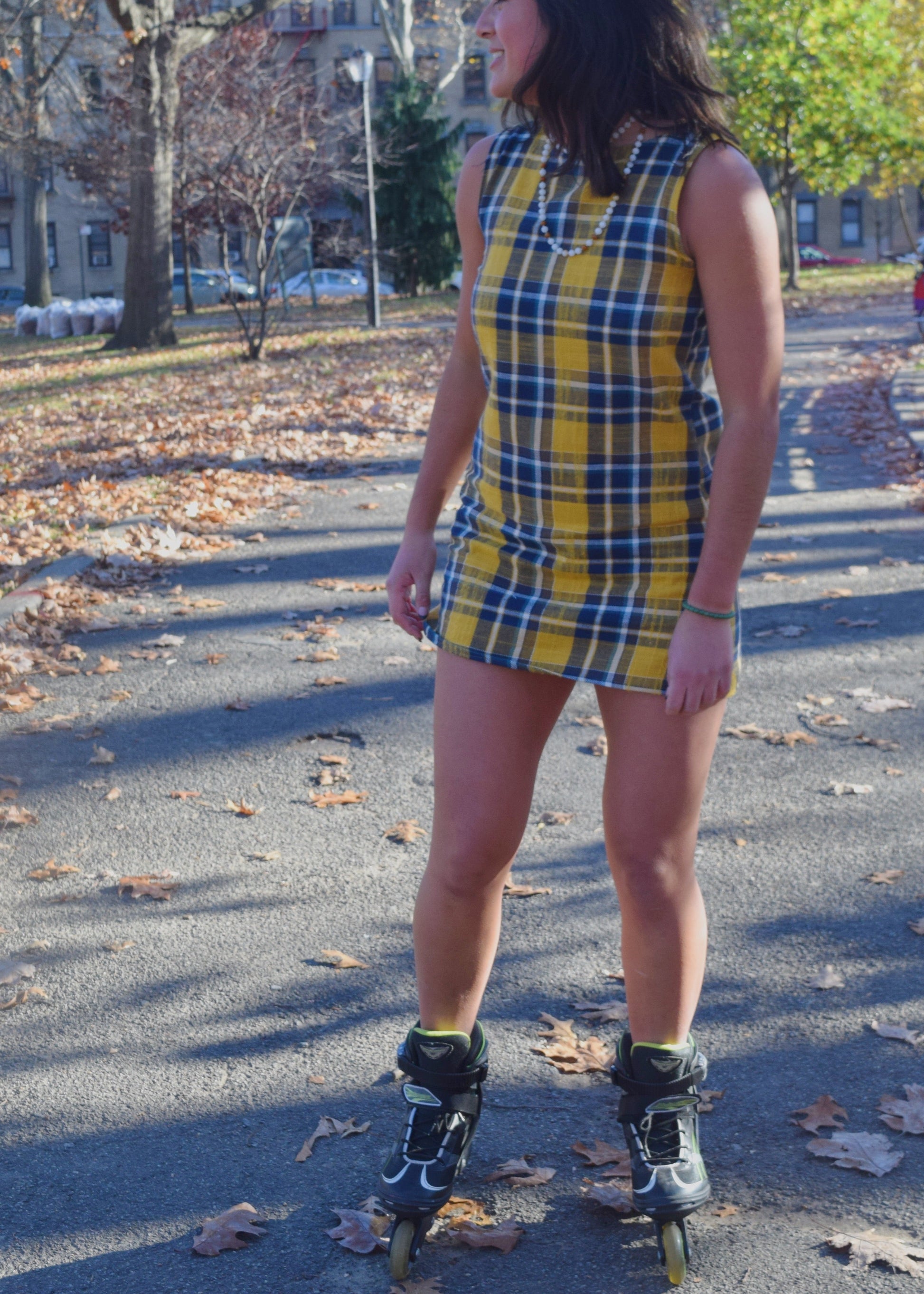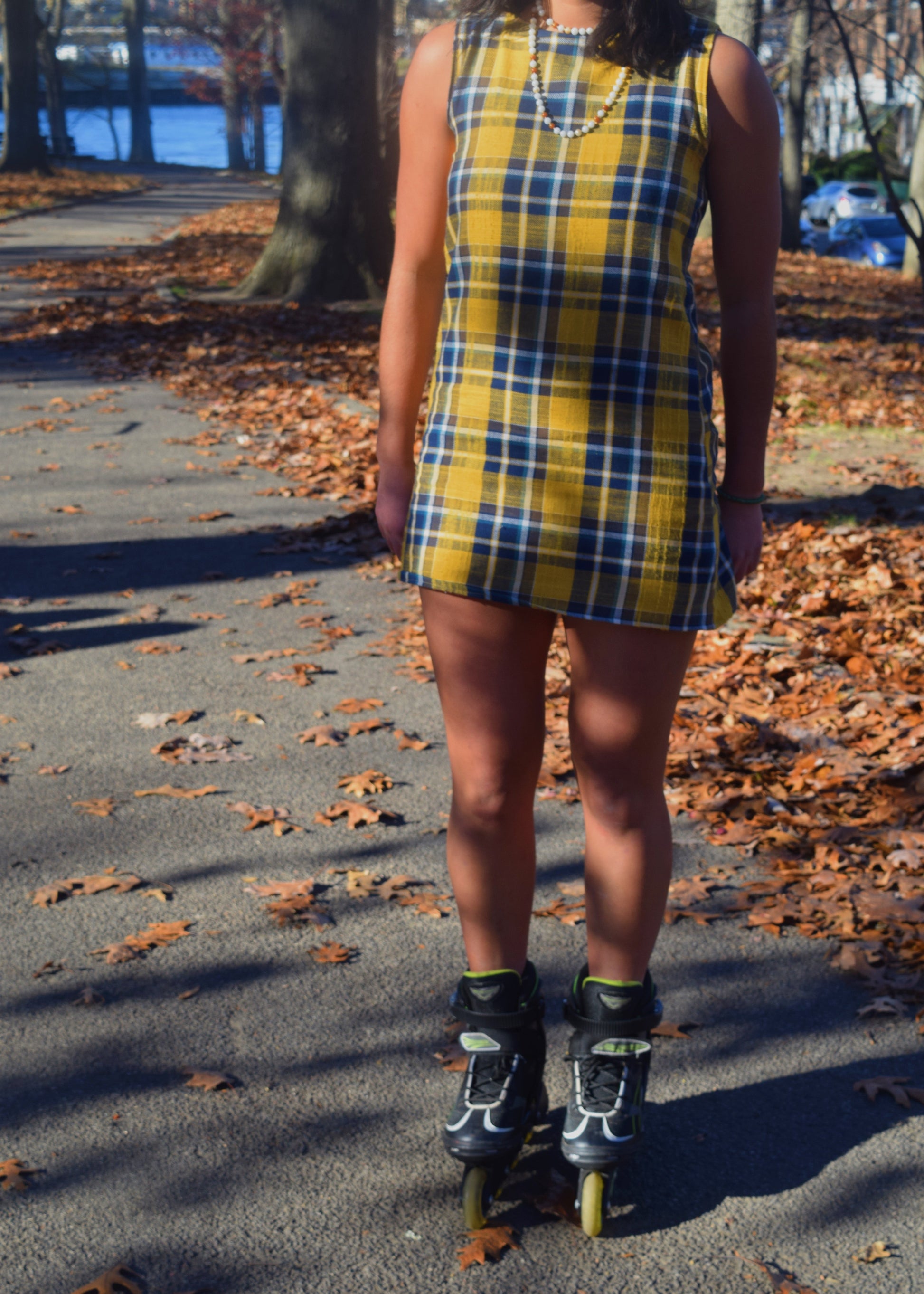 this babydoll dress is made with 100% cotton yellow, navy blue, and white patterned plaid. the material is very soft and medium weight.